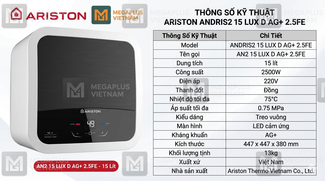 Tên sản phẩm Ariston ANDRIS2 15 LUX D AG+