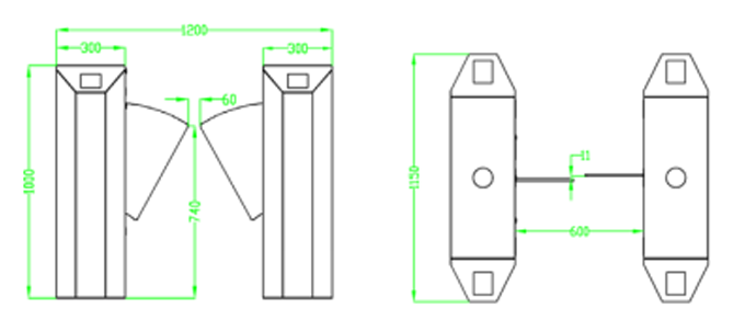 Kích thước Cổng Barrier Flap lối vào ZKTeco-FBL2000 Series