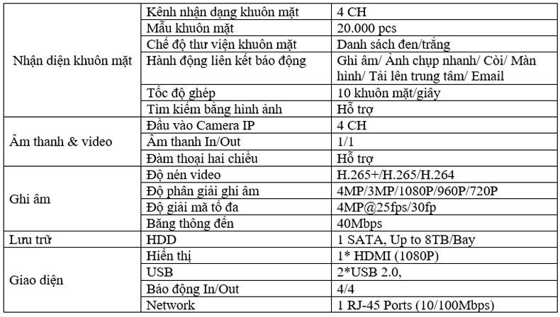 Thông số kỹ thuật Đầu ghi -IP Z8536NMR-4F