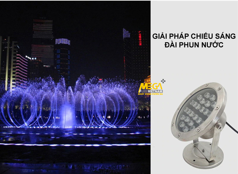 - Đèn led âm nước có đế nổi cao cấp của MegaPlus Việt Nam cung cấp là sản phẩm chất lượng cao thường được sử dụng những công trình có bể nước, đài phun nước và bể bơi. Đèn sử dụng chip công nghệ tiêu chuẩn USA và EU ưu việt với ánh sáng chất lượng cao. Nguồn led từ Đài Loan với dải công suất cao giúp đèn hoạt động ổn định trong thời gian dài. Đèn với tiêu chuẩn chống nước theo quy định .