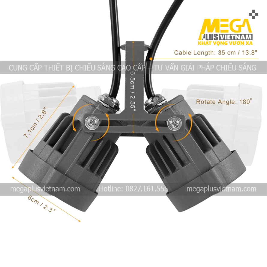 - Góc xoay: Tối đa. 180 ° (Mỗi đèn)