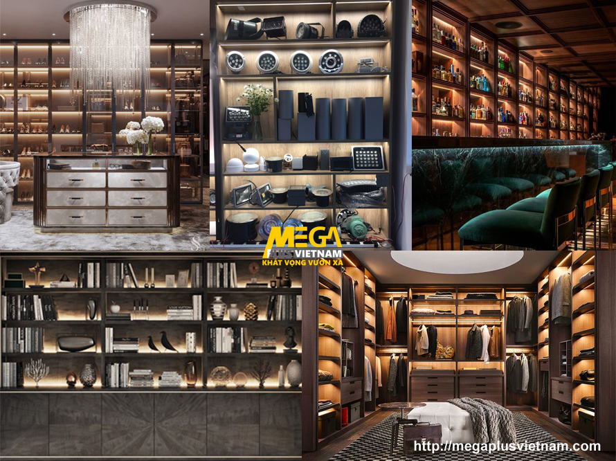 Một số hình ảnh tham khảo hiệu ứng chiếu sáng tủ kính – tủ rượu khi triển khai Đèn LED Profile thanh nhôm cao cấp M-CL3