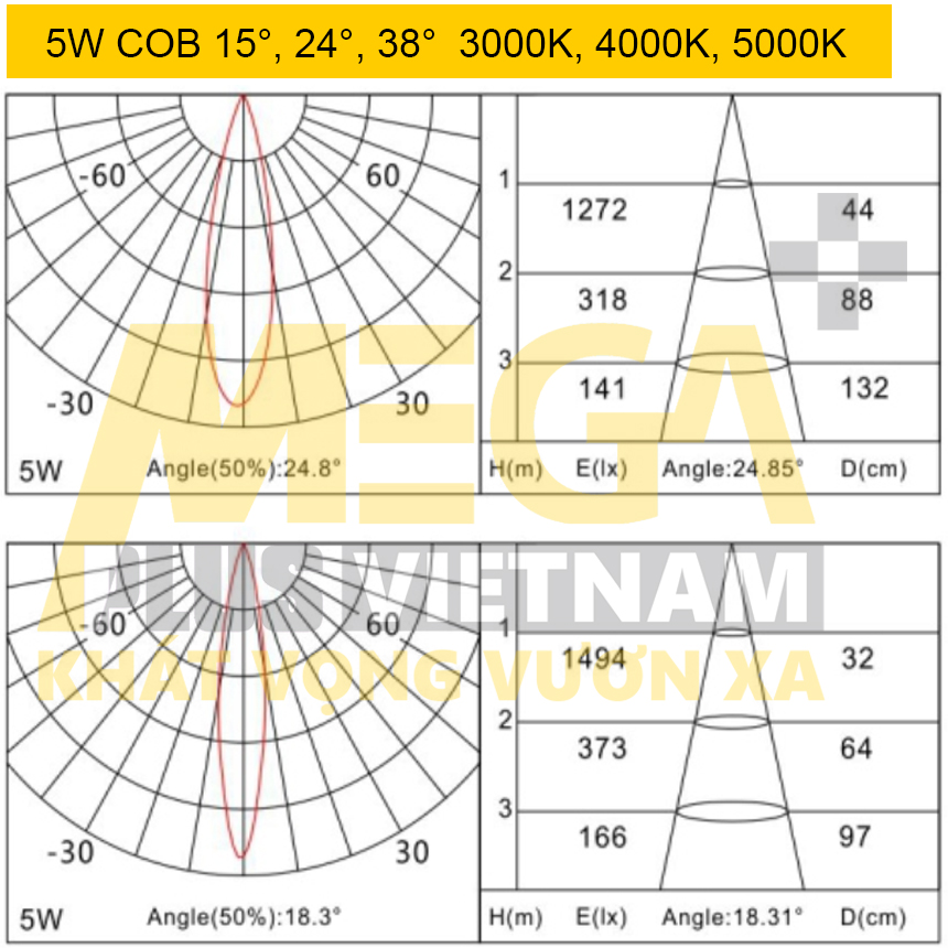 Thông số kỹ thuật Đèn ray nam châm tròn rọi COB nhiều cạnh 5W LSR-20T81005-XX
