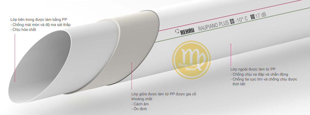 HỆ THỐNG ỐNG THOÁT GIẢM ÂM 3 LỚP RAUPIANO PLUS CỦA REHAU