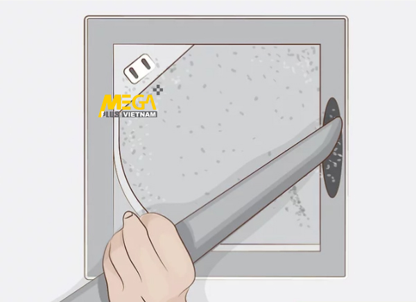 Sử dụng máy hút bụi để hút bụi bên trong ống xả. Những phần bụi bẩn và dầu mỡ máy hút bụi không hút hết. Bạn sẽ dùng giẻ có chút xà phòng để lau cho sạch.