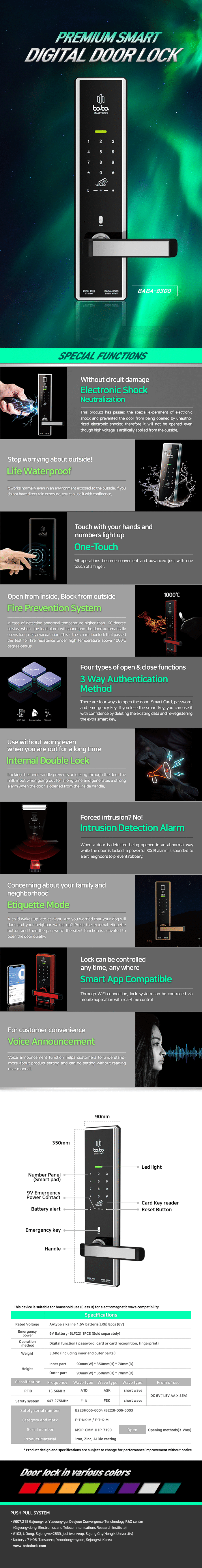 - Khóa cửa điện tử Babalock 8300 là dòng Khóa cửa điện tử thông minh được dùng phổ biến tại Hàn Quốc. Khóa Babalock 8300 được sử dụng rộng rãi cho cửa ra vào đa mục đích như Chung cư, nhà riêng hộ gia đình.