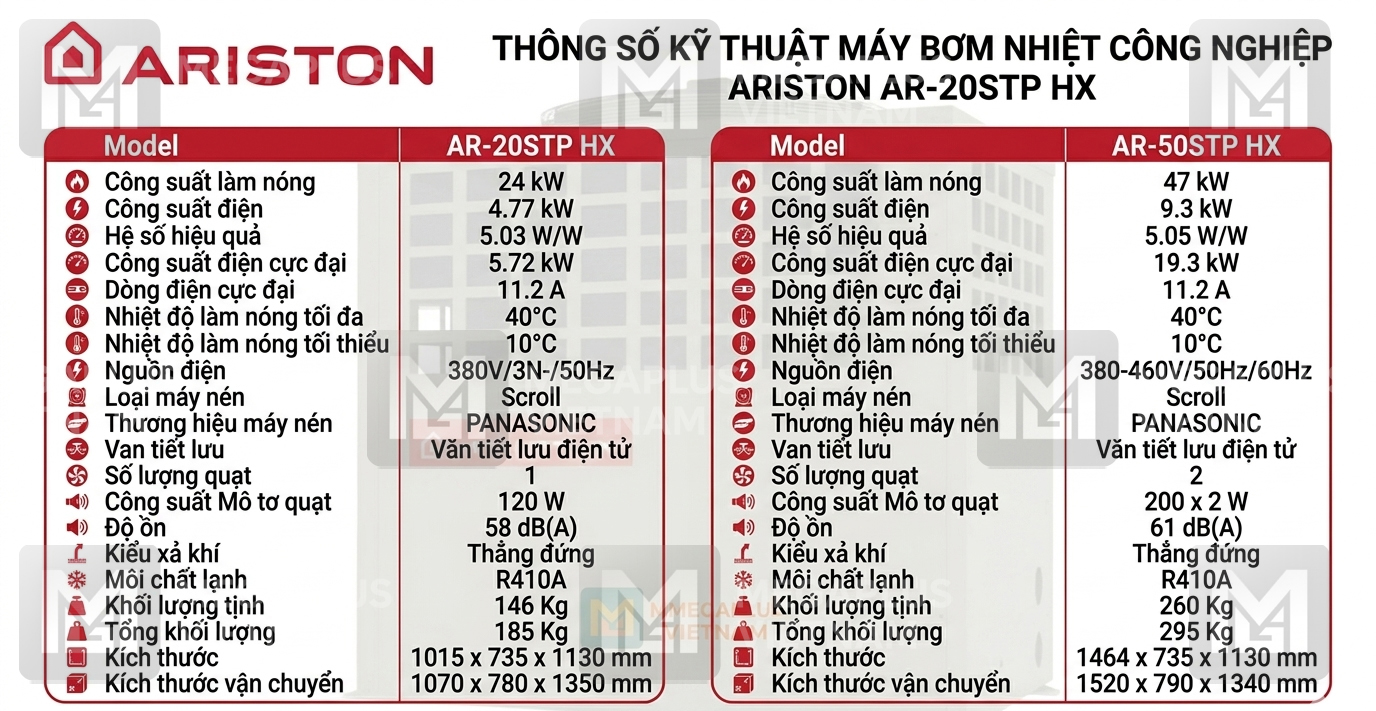 Với kinh nghiệm thực chiến trong việc triển khai Giải pháp nước nóng trung tâm công suất lớn cho khách sạn, resort và nhà máy, MegaPlus Việt Nam cam kết mang đến hiệu suất năng lượng tối ưu nhất cho dòng Heat Pump Ariston AR-20STP HX:
