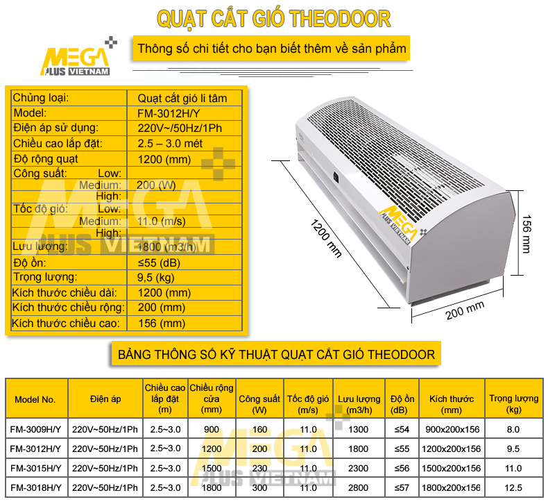 Quạt Cắt Gió THEODOOR 1M2 FM-3012H/Y, Quạt chắn gió THEODOOR 1M2 FM-3012H/Y