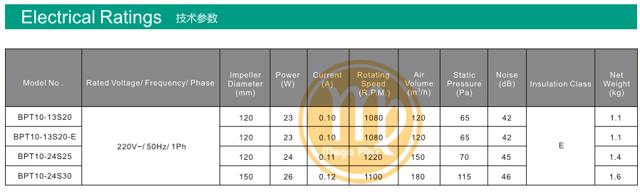 Thông số kỹ thuật Quạt thông gió âm trần ống nối Nedfon BPT-S