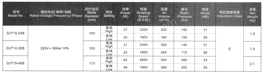 Thông số kỹ thuật Quạt Thông Gió Âm Trần Ống Nối Nedfon DJT12-33S