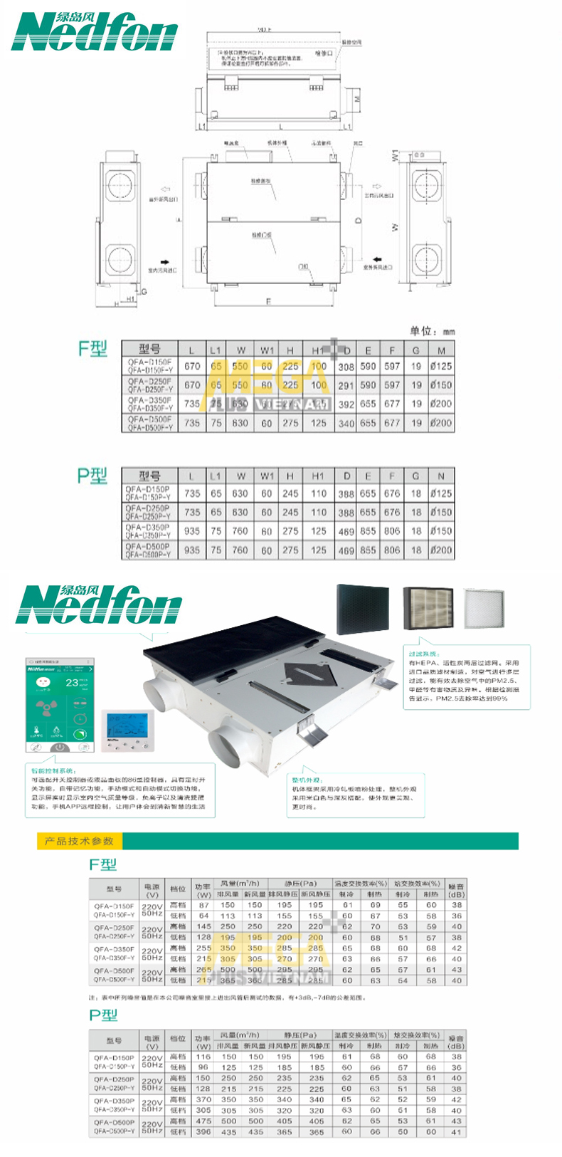 Quạt Thông Gió Thu Hồi Nhiệt Nedfon QFA-D250TP-Y - Thiết Bị Thu Hồi Nhiệt Nedfon QFA-D250TP-Y