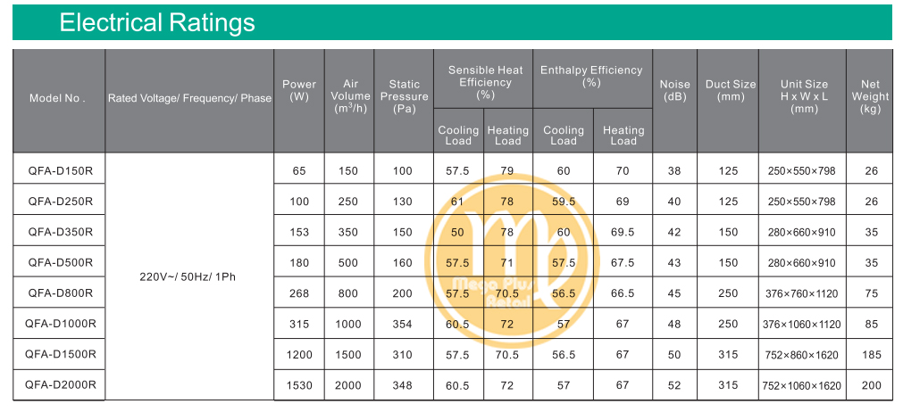 Thông số kỹ thuật Quạt Thông Gió Thu Hồi Nhiệt Nedfon QFA - Thiết bị thông gió thu hồi nhiệt – Nedfon